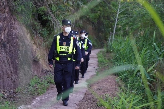2021年3月,黃日所在的專案組掌握到一個(gè)重要信息,一個(gè)運(yùn)送人員非法入境的犯罪團(tuán)伙正在崇左天等縣秘密轉(zhuǎn)運(yùn)人員。“必須要把這伙犯罪分子裝進(jìn)‘袋子’里!”黃日和戰(zhàn)友們通過(guò)縝密偵查,最終決定在天等縣和大新縣接壤的一段窄路上設(shè)伏。