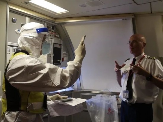 圖為譚家海在開展航班查驗勤務。