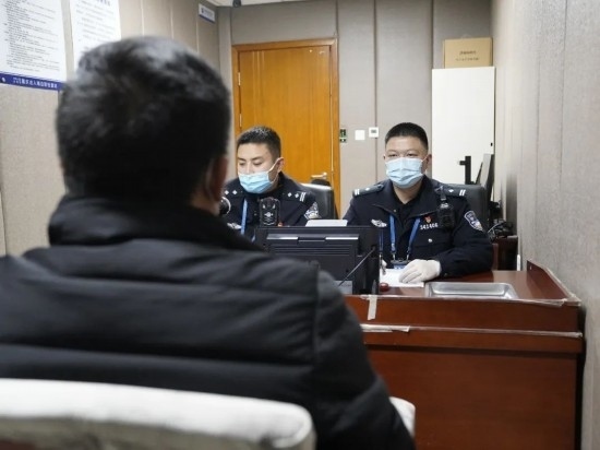 圖為譚家海和同事審查涉嫌跨境違法犯罪的嫌疑人。