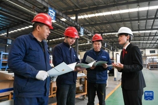 3月24日,鹽城市亭湖區(qū)人民法院的工作人員在轄區(qū)內(nèi)一工廠進(jìn)行普法宣傳。