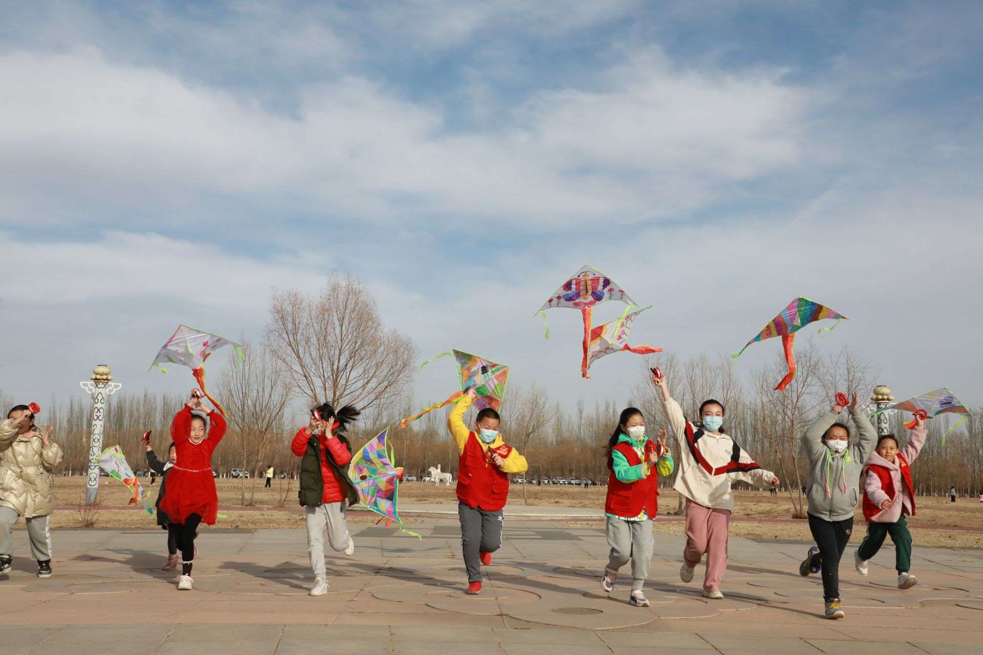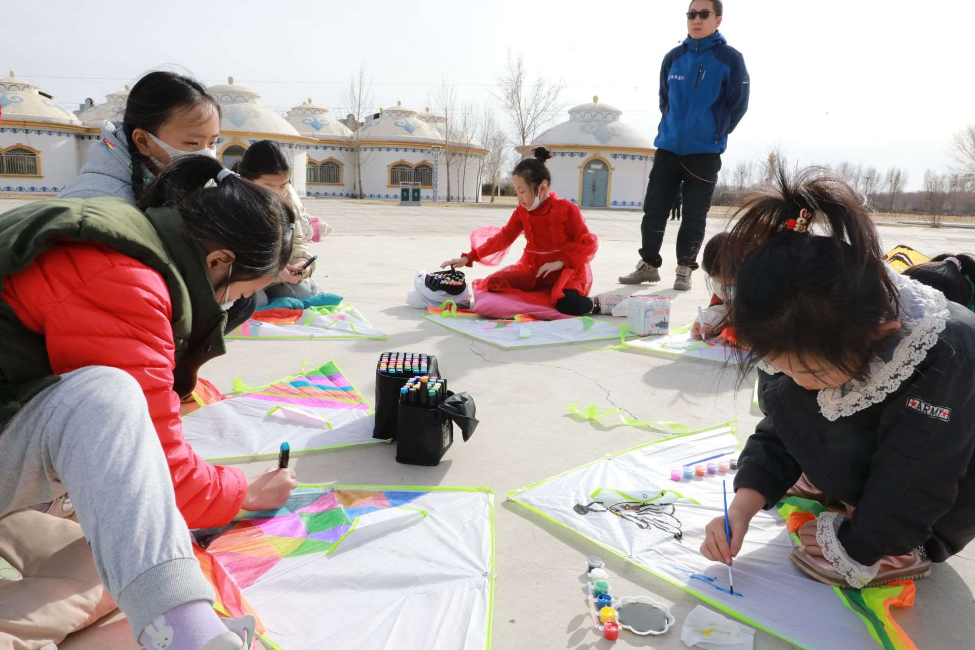 活動現(xiàn)場,呼和浩特市風箏協(xié)會還特地準備了20個空白風箏,讓孩子們充分發(fā)揮想象力,動手繪制自己喜歡的圖案。沐浴著溫暖的春光,小記者們拿出事先準備好的水彩筆或者顏料,或趴或坐,認真構思,有的在風箏上畫上了粉色的郁金香,有的畫上了振翅飛舞的蝴蝶,有的畫上了美麗的白雪公主,還有的涂鴉上喜歡的色塊,他們用五彩斑斕的顏色點綴創(chuàng)意,裝點自己喜歡的風箏。一個小時的功夫,一個個獨具創(chuàng)意的風箏在小記者們的巧手繪制中完成了。在郝偉老師的指導下,小記者們把風箏安裝好,接上線,舉行了一場小型風箏比賽。“哇,成功了,起飛了!”只見數(shù)十只色彩各異的風箏隨風飛上天空,你爭我趕,越飛越高,小記者們?nèi)滩蛔“l(fā)出歡呼聲,臉上洋溢著開心地笑容。
