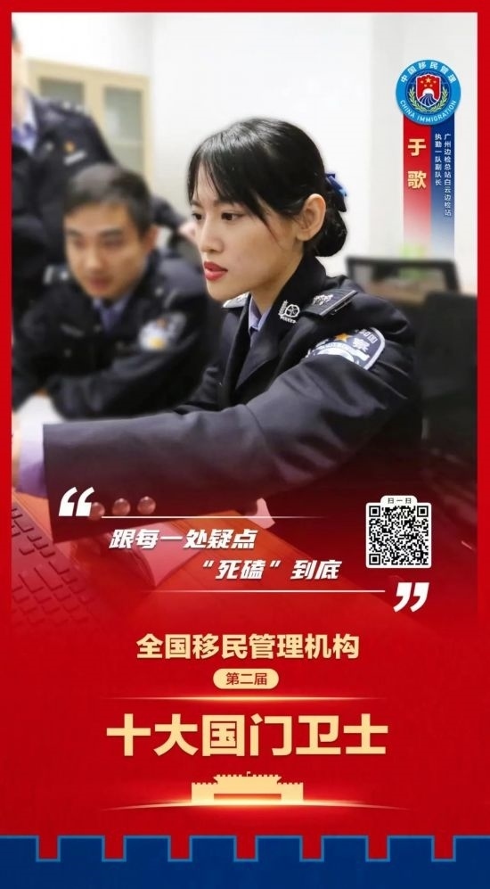 廣州出入境邊防檢查總站白云出入境邊防檢查站執(zhí)勤一隊(duì)副隊(duì)長(zhǎng)、一級(jí)警長(zhǎng) 于歌(女)