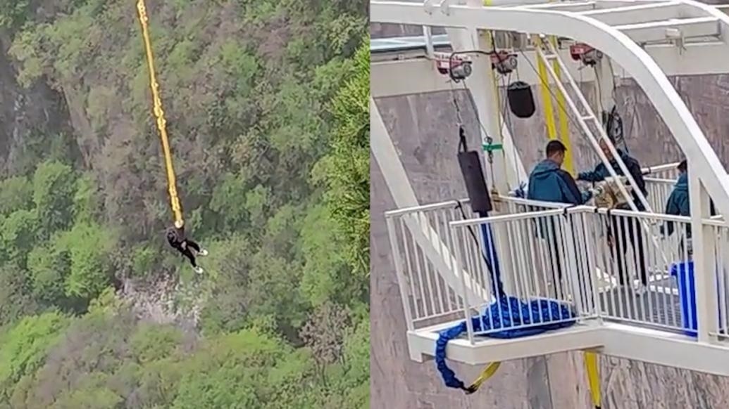 ·游客蹦極被掛半空半小時(shí),河南新鄉(xiāng)寶泉崖天下景區(qū):突遇停電,手動(dòng)搖上來(lái)。