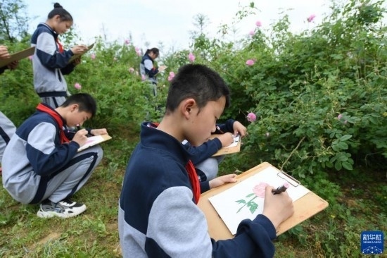 4月20日,埭溪鎮(zhèn)上強(qiáng)中學(xué)的學(xué)生在玫瑰莊園寫(xiě)生。