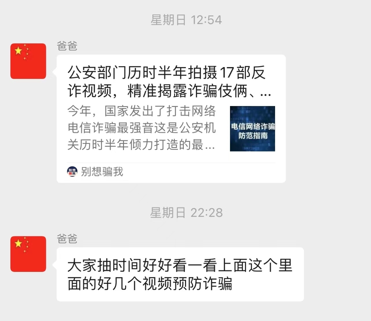 ▲上周日,張爸爸在群里分享了一則防詐騙推文卻一直沒人回復