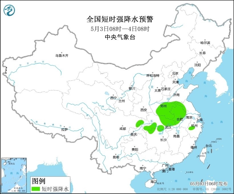 預(yù)計5月3日08時至4日08時,河南東部和南部、安徽中北部、湖北東部等地的部分地區(qū)將有8-10級雷暴大風(fēng)或冰雹天氣;山東南部、河南中東部和南部、安徽中北部、江蘇西北部、湖北東部和西南部、湖南北部、四川東北部、重慶東北部等地的部分地區(qū)將有短時強降水天氣,小時雨量20-40毫米,局地可達50毫米以上。