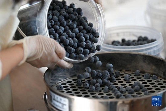 呂欣在挑選藍(lán)莓準(zhǔn)備包裝(5月3日攝)。