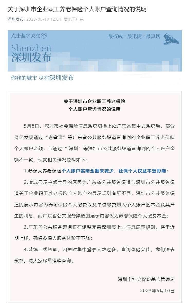 ·深圳社保系統(tǒng)切換,個(gè)人賬戶(hù)大幅減少?官方回應(yīng):實(shí)際金額未減少,個(gè)人權(quán)益不受影響。