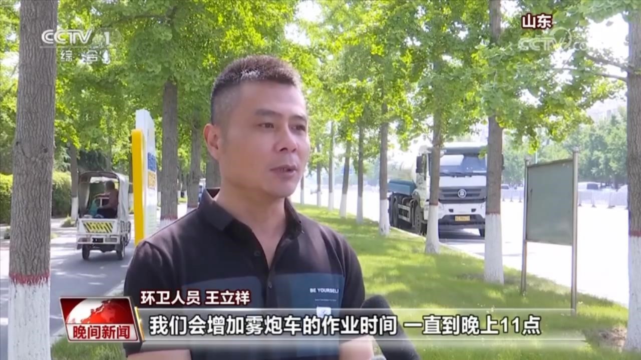 環(huán)衛(wèi)人員 王立祥:如果氣溫連續(xù)升高的話,我們會增加霧炮車的作業(yè)時間,一直到晚上11點(diǎn)。