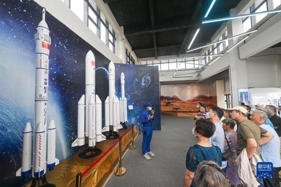 游客在位于海南省文昌市的文昌航天科普中心參觀游覽(5月14日攝)。