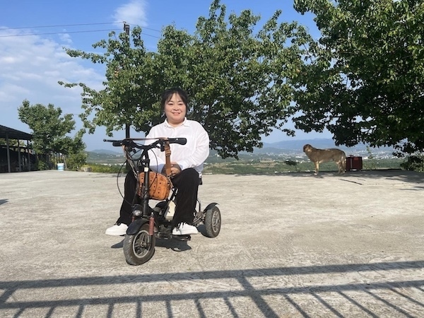 雖然每天需要在輪椅上生活,但李丹并不受限于此。因身體原因無法到學(xué)校讀書,她就在家自學(xué),每天翻字典,一個(gè)字一個(gè)字地去記;銷售有問題,12歲時(shí)她就讓父親把自己帶到菜市場,用真誠的微笑和陌生人拉近距離,打開銷路;為給桃子設(shè)計(jì)獨(dú)一無二的包裝,與漢濱區(qū)殘聯(lián)溝通后,她騎著電動(dòng)輪椅坐高鐵前往西安學(xué)習(xí)攝影和畫畫;山路陡峭,輪椅不方便上下山,她就去考了C5駕照,免去父親背她走路的辛勞。面對疾病的糾纏,李丹始終保持積極的心態(tài):“我希望自己的人生是不斷突破的?!?/p>