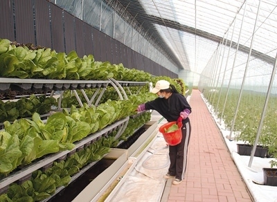 在黃灣村,還能采摘。離共享農(nóng)場(chǎng)不遠(yuǎn),就是村里打造的現(xiàn)代農(nóng)業(yè)產(chǎn)業(yè)園。玻璃溫室中,西紅柿等爬藤類(lèi)蔬菜沿繩索生長(zhǎng),各類(lèi)葉菜則長(zhǎng)在栽培架上。