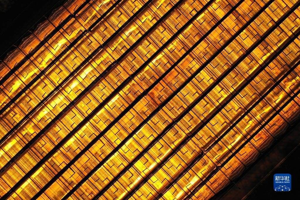 這是5月23日拍攝的貴陽(yáng)市開(kāi)陽(yáng)縣南江蔬菜良種繁育中心育苗大棚夜間補(bǔ)光場(chǎng)景(無(wú)人機(jī)照片)。補(bǔ)光更有利于種苗生長(zhǎng),縮短育苗周期。