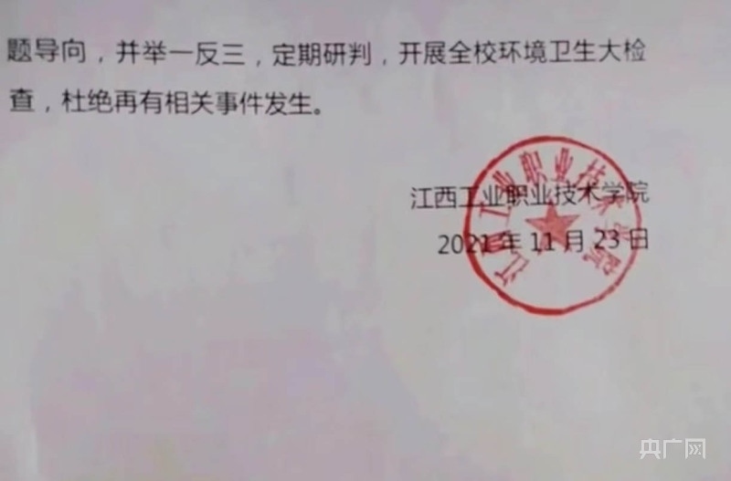 情況通報(bào)還提到,南昌市高新區(qū)市場(chǎng)監(jiān)督管理局接到情況報(bào)告后,第一時(shí)間派出執(zhí)法人員到江西工業(yè)職業(yè)技術(shù)學(xué)院開(kāi)展調(diào)查,問(wèn)詢學(xué)校工作人員、食堂負(fù)責(zé)人、當(dāng)事學(xué)生及相關(guān)知情人,對(duì)食品留樣進(jìn)行采樣檢測(cè)。