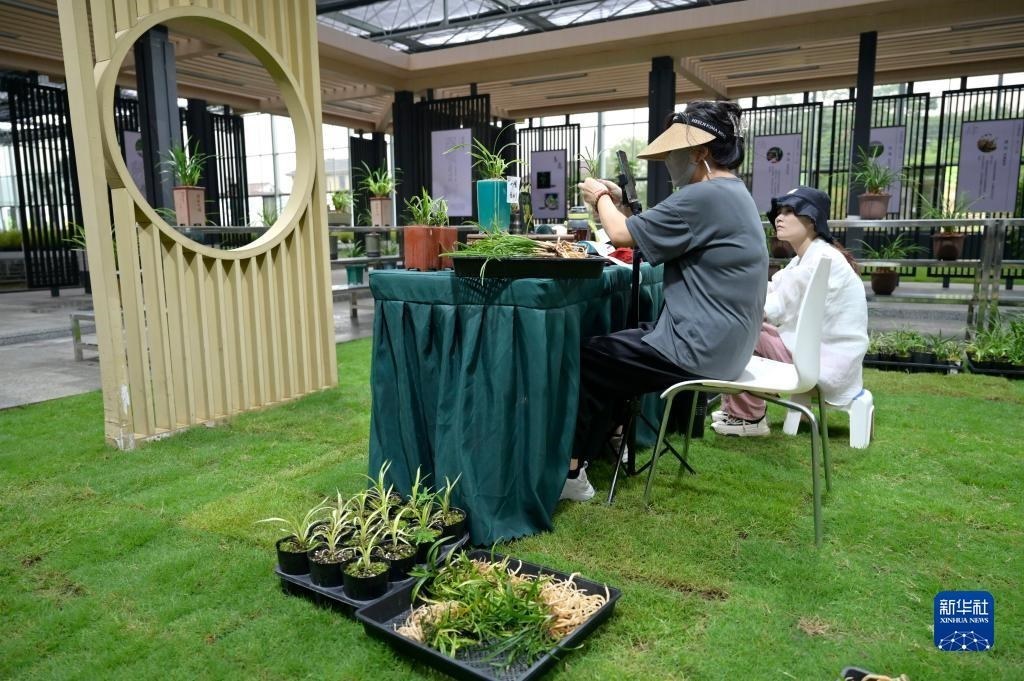 6月8日在浙江省紹興市柯橋區(qū)漓渚鎮(zhèn)棠棣村拍攝的蘭花數(shù)字工廠一景。新華社記者 才揚 攝