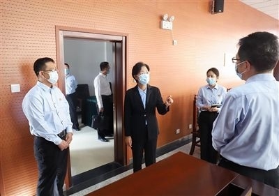 天津高院黨組書記、院長李靜(右三)到靜海區(qū)法院調(diào)研,實(shí)地查看靜海鎮(zhèn)人民法庭。