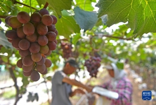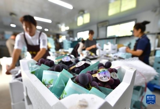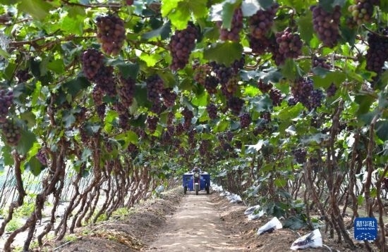 近日,遼寧省燈塔市種植的遼峰葡萄喜迎豐收。燈塔市出產(chǎn)的遼峰葡萄遠近聞名,目前種植面積約1萬畝。當?shù)匾研纬善咸雅嘤?、種植、銷售、倉儲、加工相關(guān)產(chǎn)業(yè)鏈,葡萄是當?shù)剞r(nóng)民致富增收的特色產(chǎn)業(yè)。