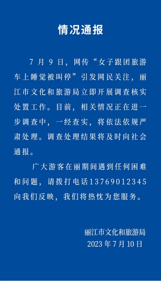 ·女子跟團游車上睡覺被叫醒不許睡?麗江文旅局:立即調(diào)查。