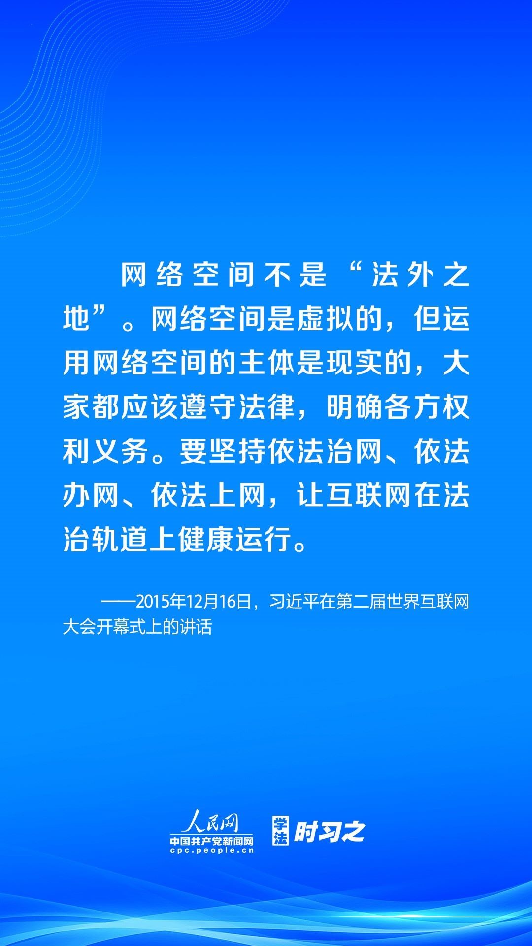 營造風(fēng)清氣正的網(wǎng)絡(luò)空間,離不開法治手段的保障。黨的十八大以來,習(xí)近平總書記高度重視網(wǎng)絡(luò)法治工作,強調(diào)要堅持依法治網(wǎng)、依法辦網(wǎng)、依法上網(wǎng),讓互聯(lián)網(wǎng)在法治軌道上健康運行。