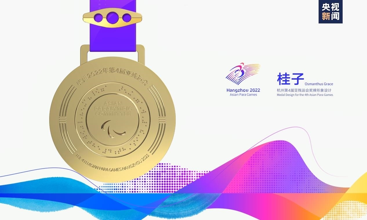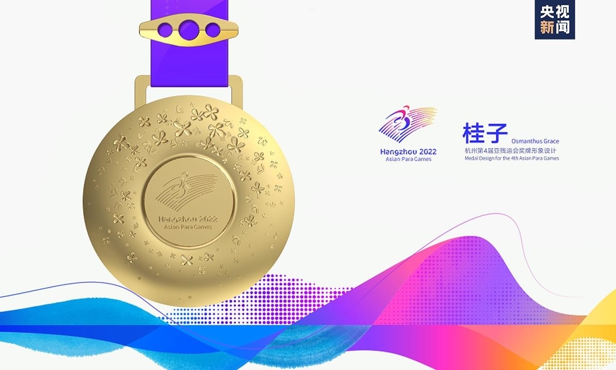 “桂子即桂花,素有金桂銀桂之分,暗合金牌銀牌?!睋?dān)任獎(jiǎng)牌設(shè)計(jì)團(tuán)隊(duì)主要負(fù)責(zé)人的中國(guó)美術(shù)學(xué)院工業(yè)設(shè)計(jì)副教授周波表示,“桂花是杭州市花,在丹桂飄香的金秋十月,我們相聚在杭州,整個(gè)城市都因它的綻放而香氣撲鼻。我覺得桂花是最好的意象表達(dá),漫天飛舞、靈動(dòng)飛逸的桂花飄灑在亞殘運(yùn)會(huì)會(huì)徽周圍,每一粒灑落的桂子就好比殘疾運(yùn)動(dòng)員奮勇向前,挑戰(zhàn)自我而獲得的一枚枚獎(jiǎng)牌。”