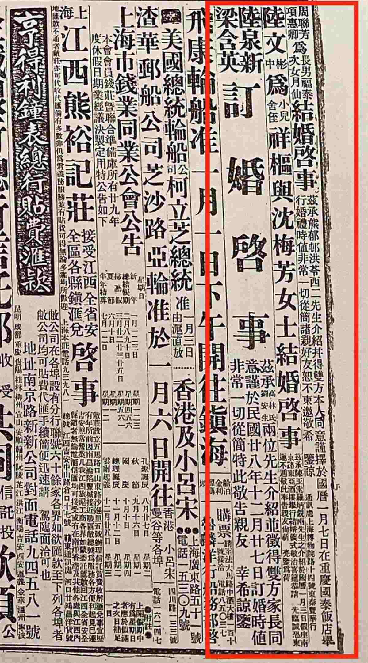 據(jù)了解,登報(bào)結(jié)婚最早在民國風(fēng)行。當(dāng)時(shí),婚姻法和婚姻登記制度并不完善,于是結(jié)婚時(shí)在報(bào)紙上公示成為一種約定俗成的習(xí)慣。一來知會了遠(yuǎn)近親友,二來有一定法律效力,日后可以作為憑證。三來報(bào)紙便于長久保存,更具紀(jì)念意義。