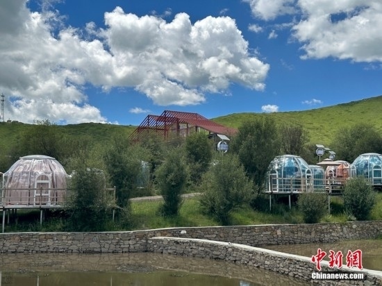 近年來,紅原縣牦?,F(xiàn)代農(nóng)業(yè)園區(qū)堅持牧旅融合發(fā)展,如今,供游客休閑的咖啡屋、星空房等設(shè)施正在如火如荼地建設(shè)中。圖為園區(qū)打造的星空房。