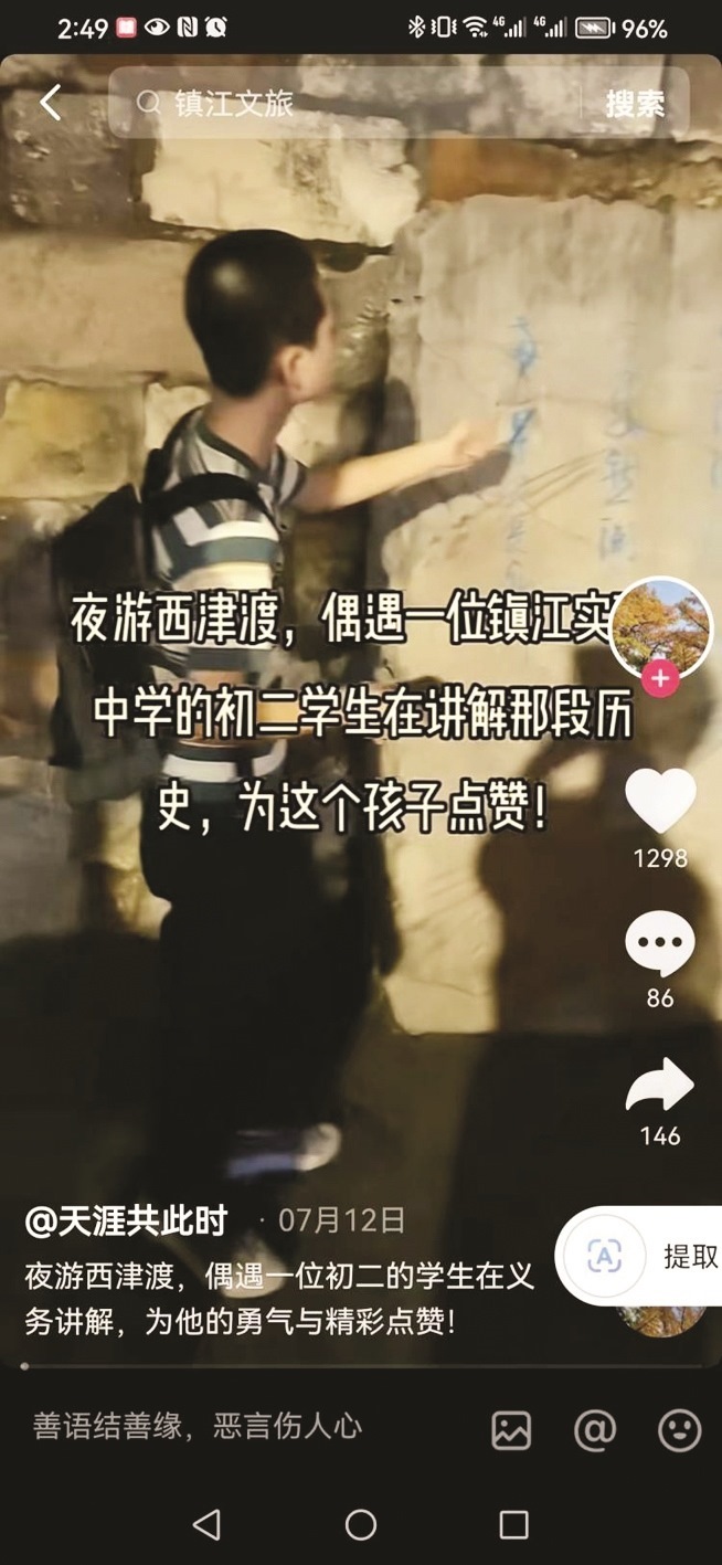 “他們,展現(xiàn)了中國(guó)少年應(yīng)有的樣子!” 鎮(zhèn)江初中生講解歷史爆火網(wǎng)絡(luò)