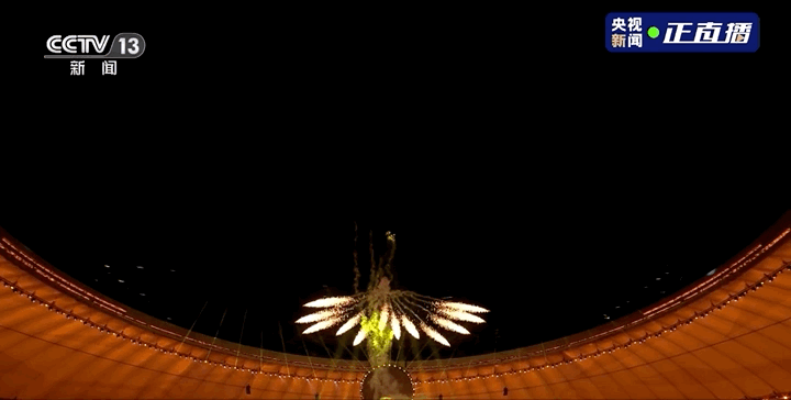從地面到空中綻放形為“12”的數(shù)字焰火