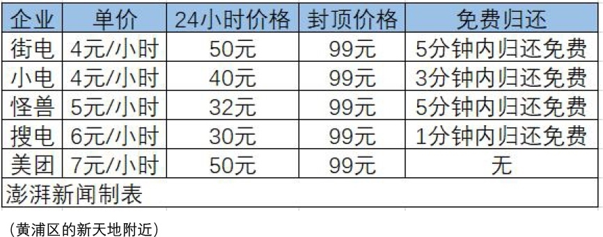 以上海地標(biāo)建筑東方明珠為例,其周圍充電寶價(jià)格在4~6元/小時(shí)不等,24小時(shí)價(jià)格多在30元,99元封頂。