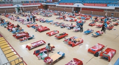 8月3日拍攝的北京房山區(qū)良鄉(xiāng)體育中心安置點(diǎn)。本報(bào)記者 張武軍攝