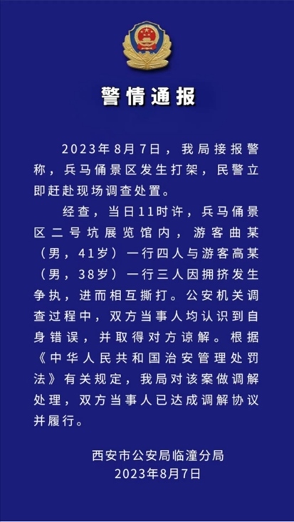 【8點(diǎn)見】西安警方通報(bào)兵馬俑景區(qū)打架事件