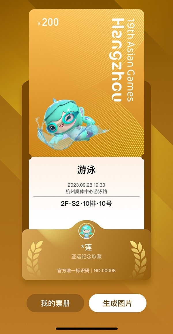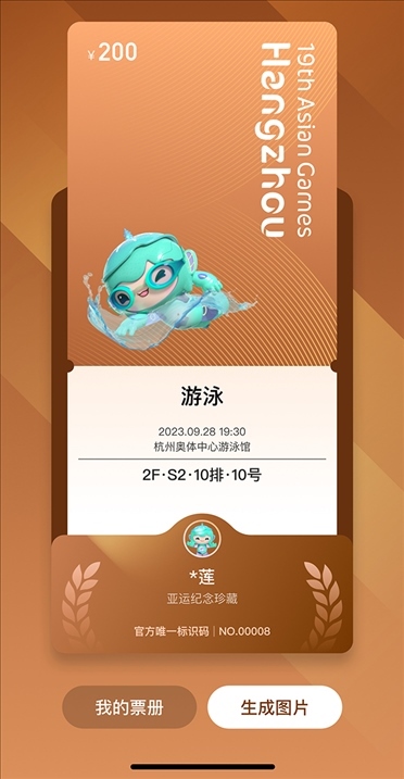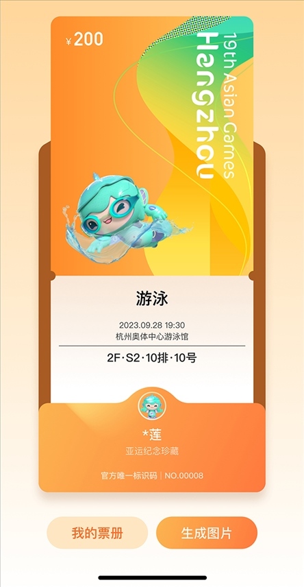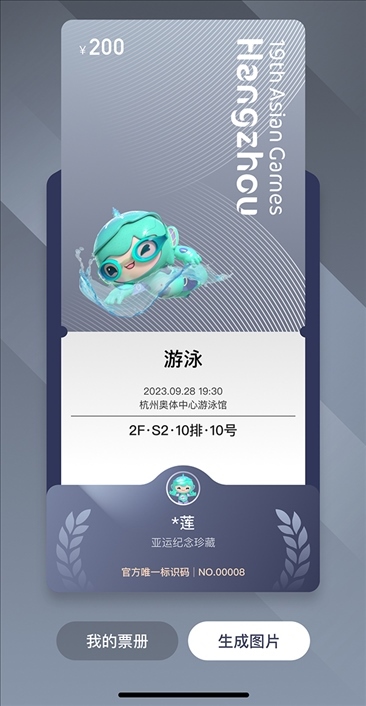 為呼吁全民助力綠色亞運(yùn),杭州亞運(yùn)會(huì)推薦使用電子票。凡購(gòu)買(mǎi)電子票的用戶均可在公眾售票官網(wǎng)H5頁(yè)面、智能亞運(yùn)一站通?票務(wù)通票夾中抽取對(duì)應(yīng)項(xiàng)目的電子紀(jì)念票,生成專(zhuān)屬票冊(cè),方便收藏、分享、傳播。電子紀(jì)念票分金、銀、銅、通用四種類(lèi)型,抽中比例分別為5%、10%、15%、70%。電子紀(jì)念票和專(zhuān)屬電子票冊(cè)首次運(yùn)用于國(guó)內(nèi)舉辦的綜合性運(yùn)動(dòng)會(huì),是智能辦賽理念的生動(dòng)體現(xiàn)。
