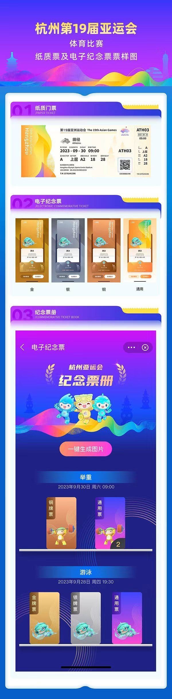 2023年8月9日,杭州亞組委發(fā)布了體育比賽紙質(zhì)票及電子紀(jì)念票票樣設(shè)計(jì)圖。