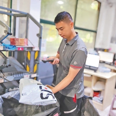 午后,湖北順豐速運(yùn)有限公司武漢唐家墩網(wǎng)點(diǎn),張裕和同事們熟練地將大小不一的快遞件分類,裝入不同的袋子中。每裝滿一個編織袋,張裕就在袋口下方貼上二維碼,再用機(jī)器掃描登記,確認(rèn)無誤后裝車發(fā)運(yùn)。