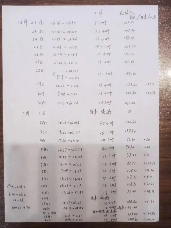 邢斌體驗外賣員期間記錄的賬單