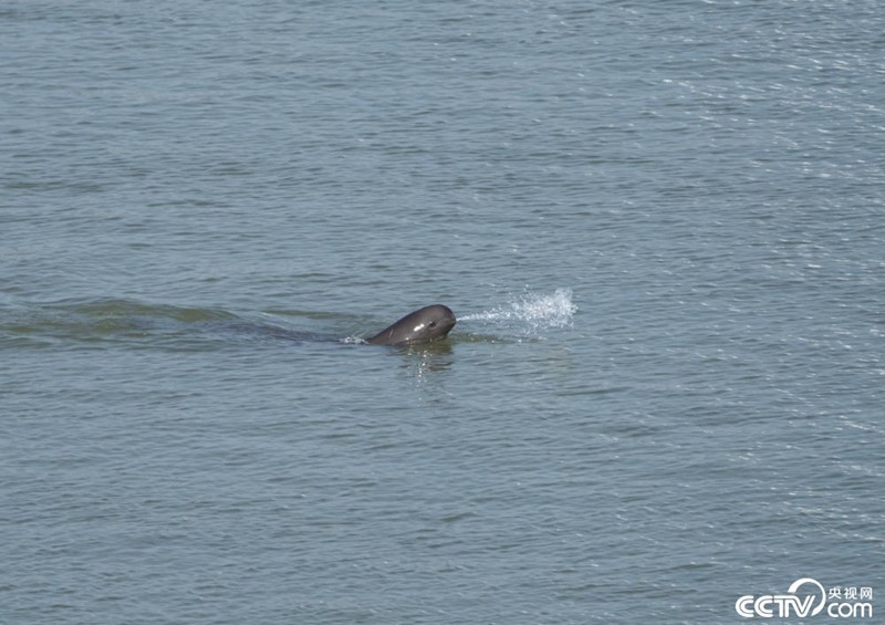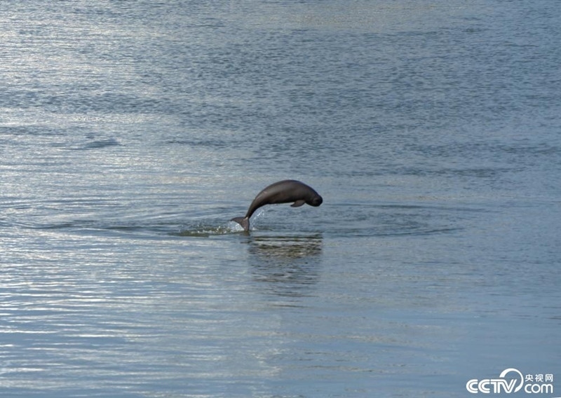 湖北宜昌:江豚在長江葛洲壩水域戲水。