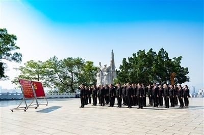 “我志愿加入中國(guó)共產(chǎn)黨,擁護(hù)黨的綱領(lǐng),遵守黨的章程……”今年7月,百色市中級(jí)人民法院黨員到百色起義革命烈士紀(jì)念碑廣場(chǎng)開(kāi)展黨日活動(dòng),緬懷革命先烈,重溫入黨誓詞。鏗鏘的誓詞,久久回蕩在紀(jì)念碑上空,銘刻在每一個(gè)人的心頭。
