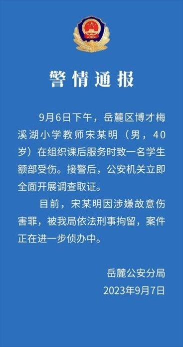 ·長(zhǎng)沙岳麓警方:打傷學(xué)生老師涉嫌故意傷害罪被刑拘。此前,長(zhǎng)沙岳麓區(qū)教育局通報(bào):該校黨總支書記和涉事教師停職。