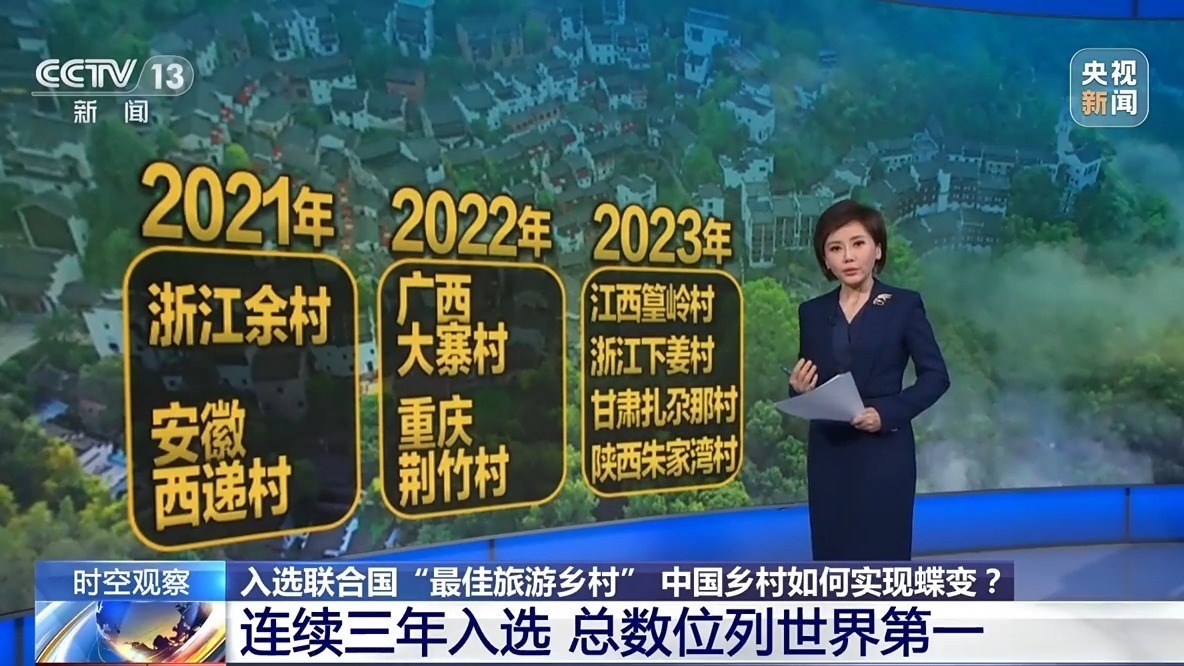 中國(guó)是從2021年就開始參與這個(gè)評(píng)選了,所以前兩屆也都有入選鄉(xiāng)村,2021年入選的是浙江余村、安徽西遞村;2022年入選的是廣西大寨村、重慶荊竹村,加上今年入選的四個(gè)村子,我國(guó)入選的總數(shù)已經(jīng)達(dá)到8個(gè),目前是全世界擁有“最佳旅游鄉(xiāng)村”最多的國(guó)家。