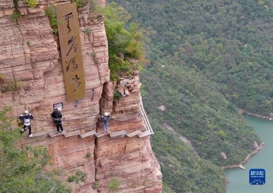 10月19日,游客在河南寶泉旅游度假區(qū)體驗(yàn)“云崖漫步”項(xiàng)目。