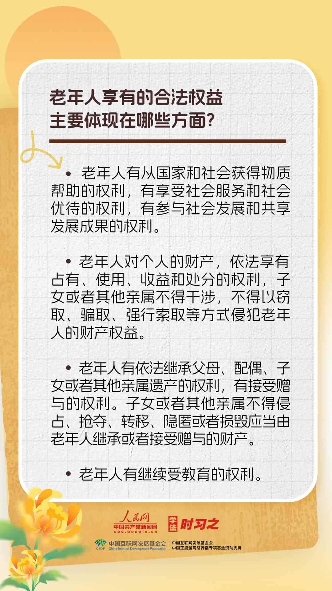 《中華人民共和國老年人權益保障法》的出臺進一步保障了老年人的合法權益,弘揚了中華民族敬老、養(yǎng)老、助老的美德。重陽節(jié),一起來了解老年人權益保障法的相關規(guī)定。