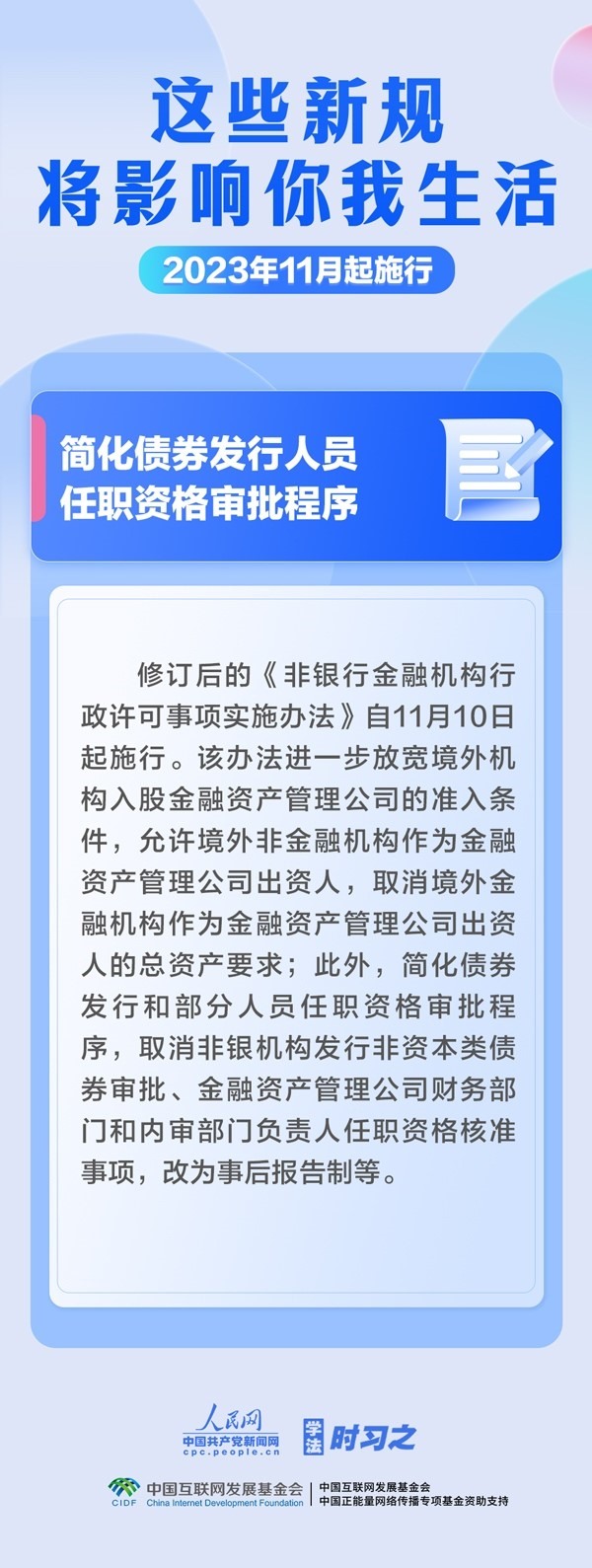 調整最高法知產法庭審理上訴案件范圍;簡化債券發(fā)行人員任職資格審批程序;取消出口貨物原產地企業(yè)備案事項……11月,這些新規(guī)施行,將影響你我生活。