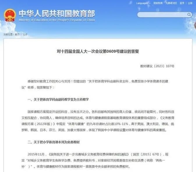 ·體育由副科變主科?教育部答復(fù)代表:無(wú)主次之分。