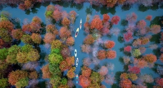 近日,位于安徽省寧國(guó)市方塘鄉(xiāng)的兩千余畝落羽杉林迎來(lái)了一年中最美的時(shí)節(jié)。一叢叢紅杉林與清澈的湖水相互掩映,充滿(mǎn)詩(shī)情畫(huà)意。