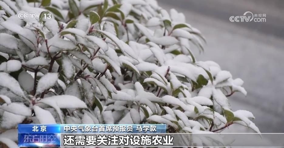 中央氣象臺首席預(yù)報員 馬學(xué)款:由于北方地區(qū)的兩輪強降雪的落區(qū)是高度重疊的,所以對于有些地方新增積雪可能有累加效果。降雪除了對交通運輸帶來一些明顯的影響之外,還需要關(guān)注對設(shè)施農(nóng)業(yè)導(dǎo)致的一些不利影響。