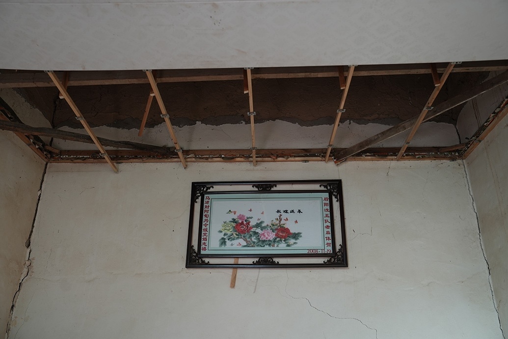 山莊村村民在墻體開(kāi)裂的家中。