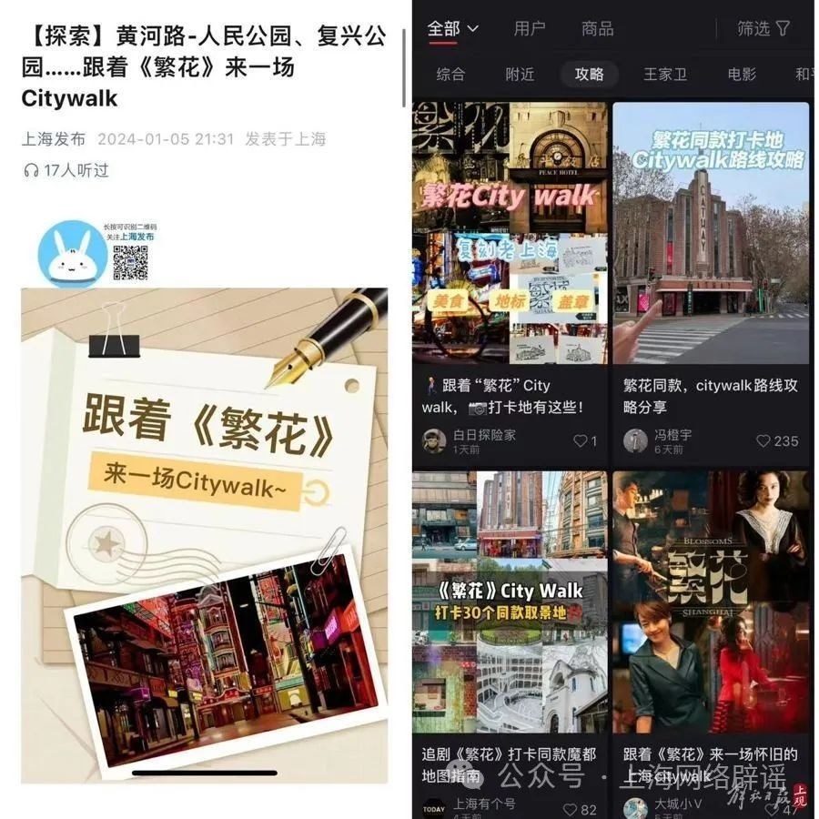 央視網(wǎng)消息:據(jù)上海網(wǎng)絡(luò)辟謠微信公眾號消息,電視劇《繁花》近日熱播,帶火了和平飯店、黃河路、進(jìn)賢路等劇中出現(xiàn)的地標(biāo)、路段,市民游客爭相打卡。誰知,這一熱度也被造謠生事者嗅出了“商機(jī)”——連續(xù)數(shù)日,“繁花Citywalk(城市散步)收費(fèi)3公里520元”的話題登上某社交平臺熱榜。兜馬路竟然也要收費(fèi),而且代價(jià)不菲?上海辟謠平臺調(diào)查發(fā)現(xiàn),并沒有。