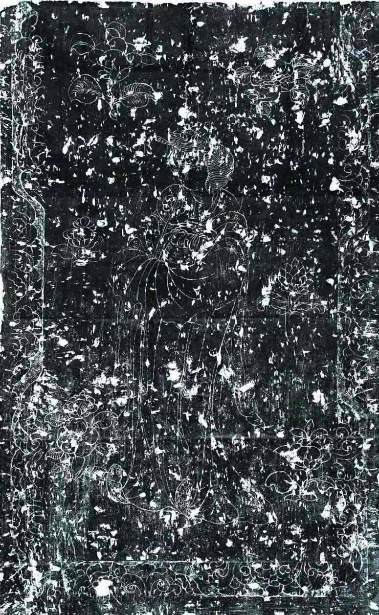 墓室西側(cè)發(fā)現(xiàn)石槨一具,保存較好。石槨面闊三間,進(jìn)深兩間,頂部為廡殿式,僅一側(cè)雕刻有瓦棱;槨身由壁板和倚柱卯和而成,板壁外側(cè)雕刻門窗、卷云及神獸,內(nèi)側(cè)主體為侍女,周邊飾有花草等內(nèi)容;倚柱內(nèi)外均刻纏枝卷草花朵,部分穿插飛禽走獸;基座以七塊石板鋪成,立面間隔刻有壸門圖案,內(nèi)填奔獸圖樣。石槨線刻精細(xì),畫(huà)面華麗而不繁縟,人物體態(tài)豐腴而不臃腫,充分體現(xiàn)出盛唐開(kāi)元時(shí)期圖案靈動(dòng)、富于想象的特征。