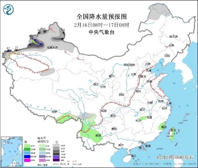 另外,今天夜間至17日,新疆北部將有一次較強降雪過程,阿勒泰、塔城、伊犁河谷等地的部分地區(qū)有大到暴雪,局地大暴雪或特大暴雪。