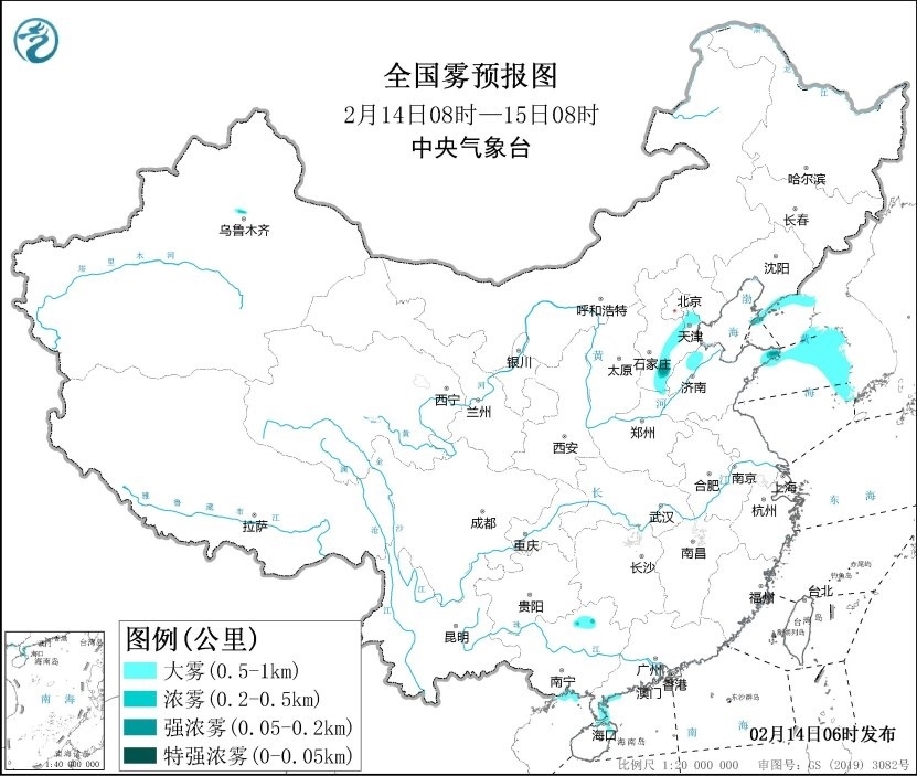 中央氣象臺今晨繼續(xù)發(fā)布大霧黃色預(yù)警:預(yù)計,今天白天至夜間,黃海北部及中部海域、遼東半島沿岸海域、山東半島東南部沿岸海域、北部灣北部海域、瓊州海峽、雷州半島東部沿岸海域及粵西沿岸海域?qū)⒂写箪F,能見度不足1公里;今晨,天津、河北東南部、廣西北部等地的部分地區(qū)有大霧天氣,其中河北東南部局地有能見度不足500米的濃霧。14日白天起,受冷空氣影響,華北中南部等地大氣擴散條件轉(zhuǎn)好,霧霾天氣減弱消散。